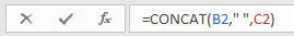 6. In cell D2, enter “=CONCAT(B2," ",C2)” and press Enter. (Note: use “CONCATENATE (B2," ",C2)” for older versions of Excel)